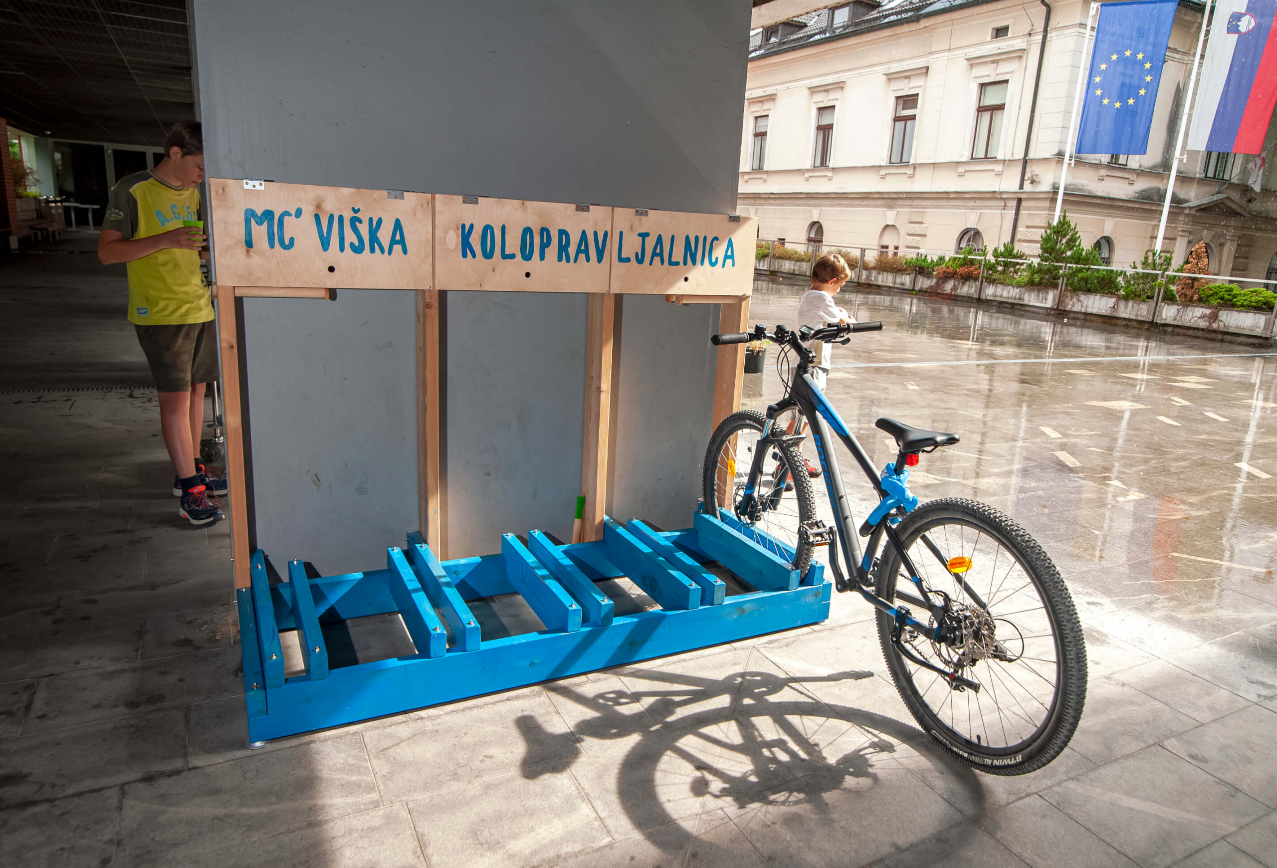 Pred Mladinskim centrom Vič smo v sklopu Projekta Zunaj Mestne občine Ljubljana postavili MC’Viško kolopravljalnico