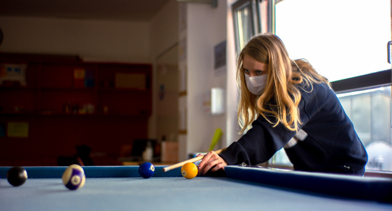 We have plenty of games in this room so you can come and play for example pingpong, table football, billiard, darts…